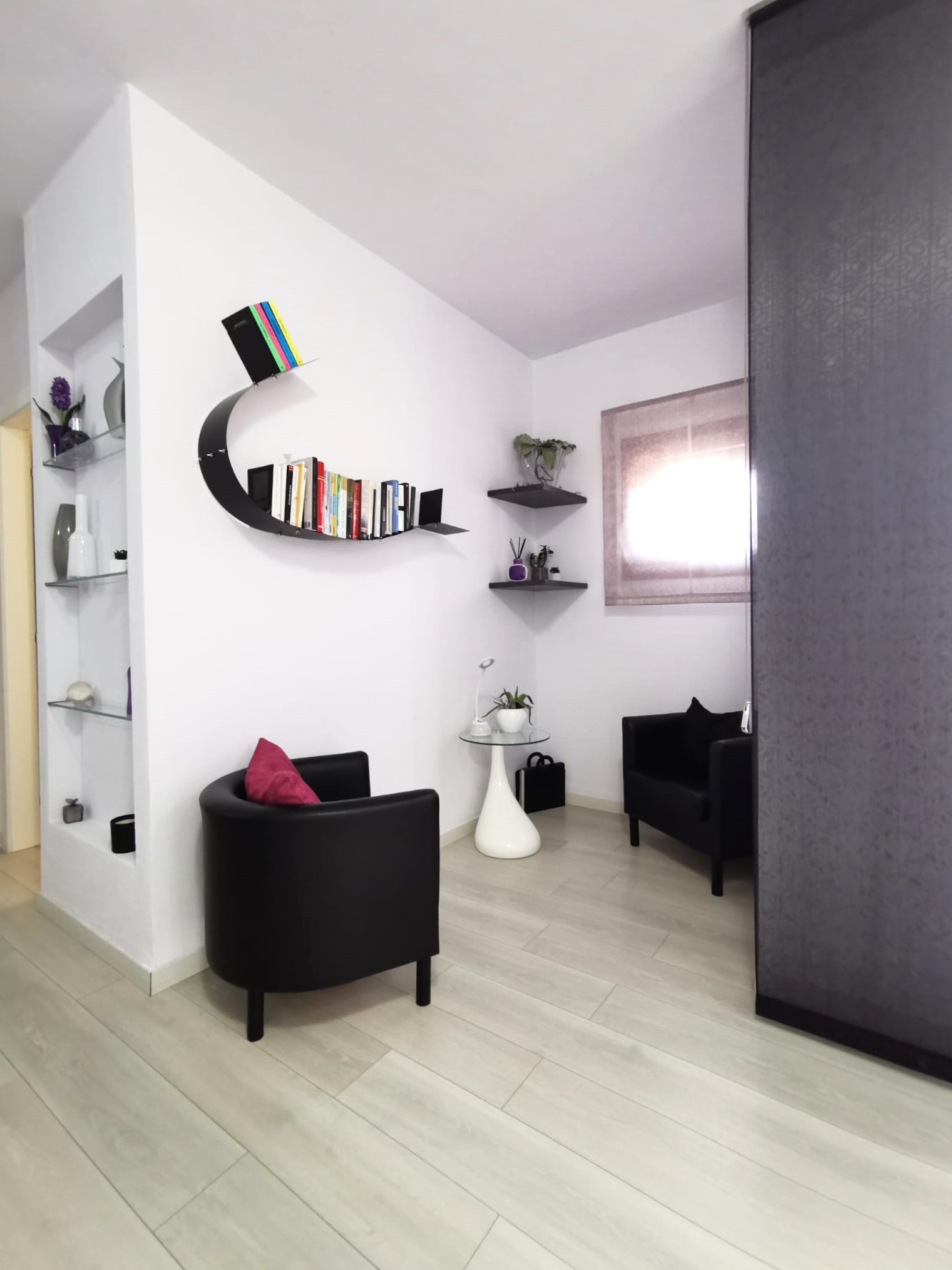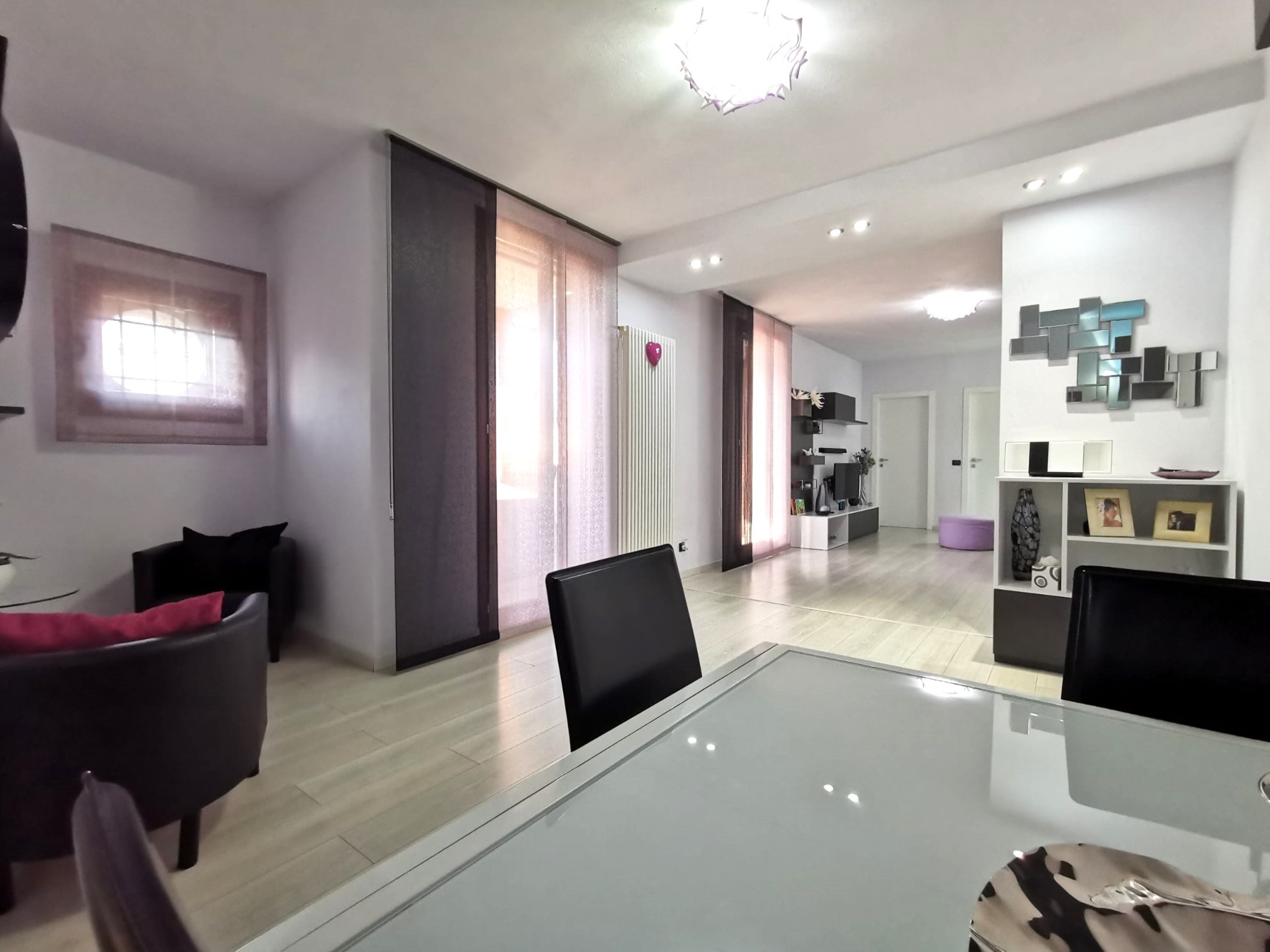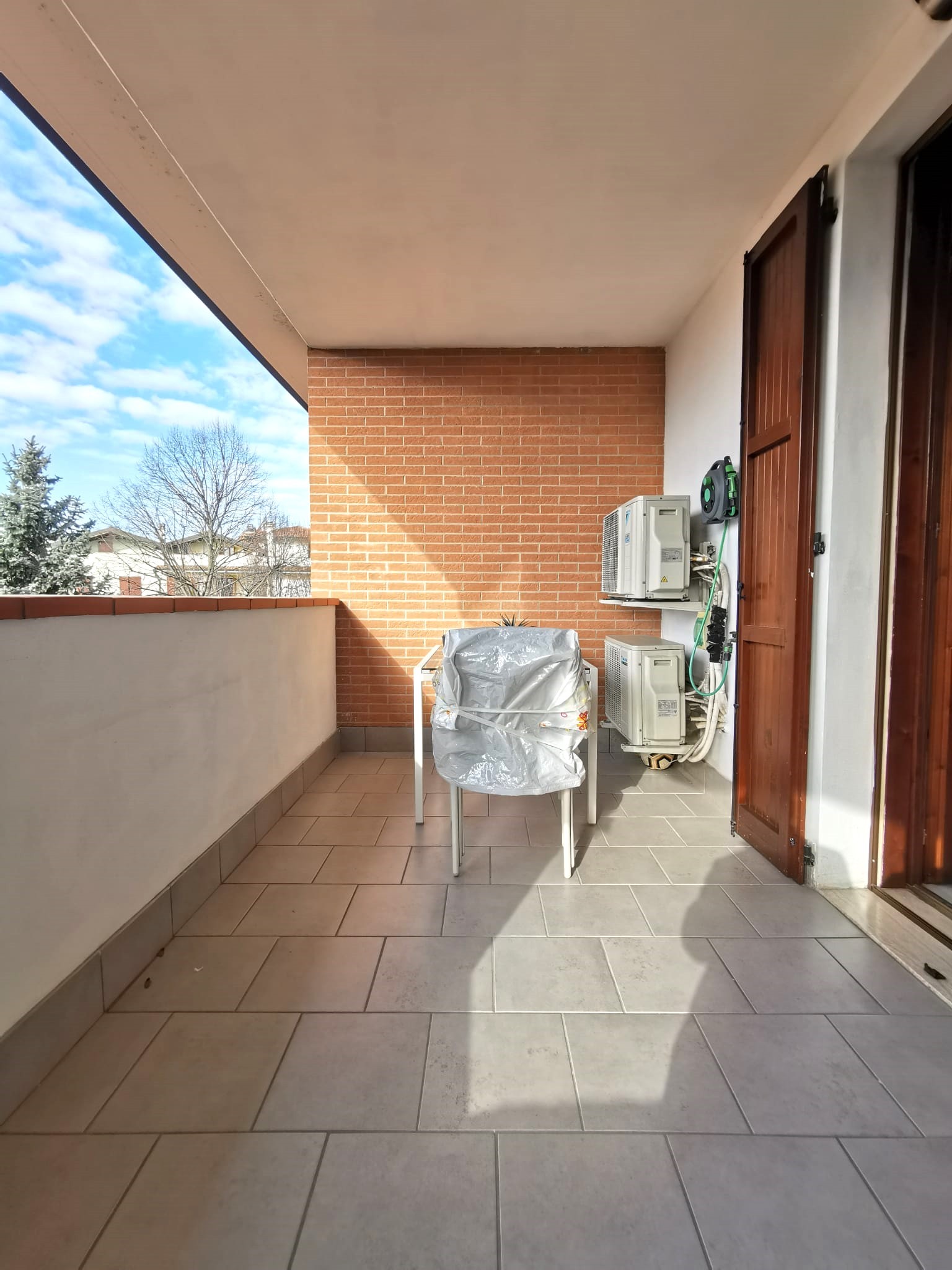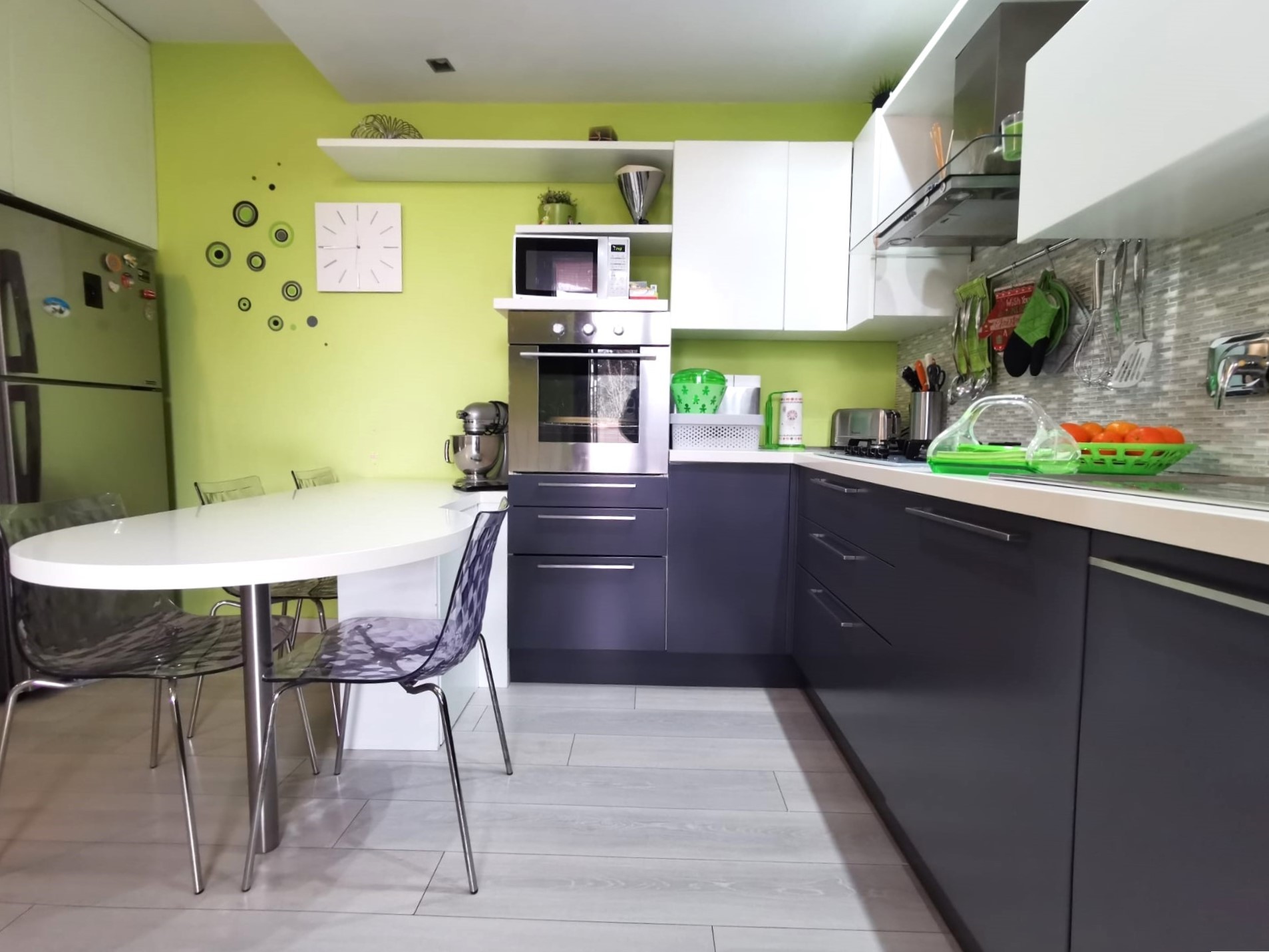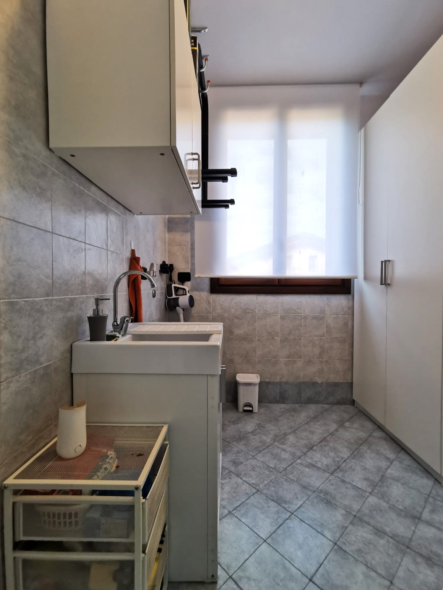 Ingresso su un luminoso e spazioso soggiorno con accesso al terrazzo loggiato, cucina abitabile con balcone, un bagno, una camera da letto e un pratico vano lavanderia.