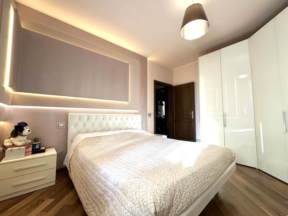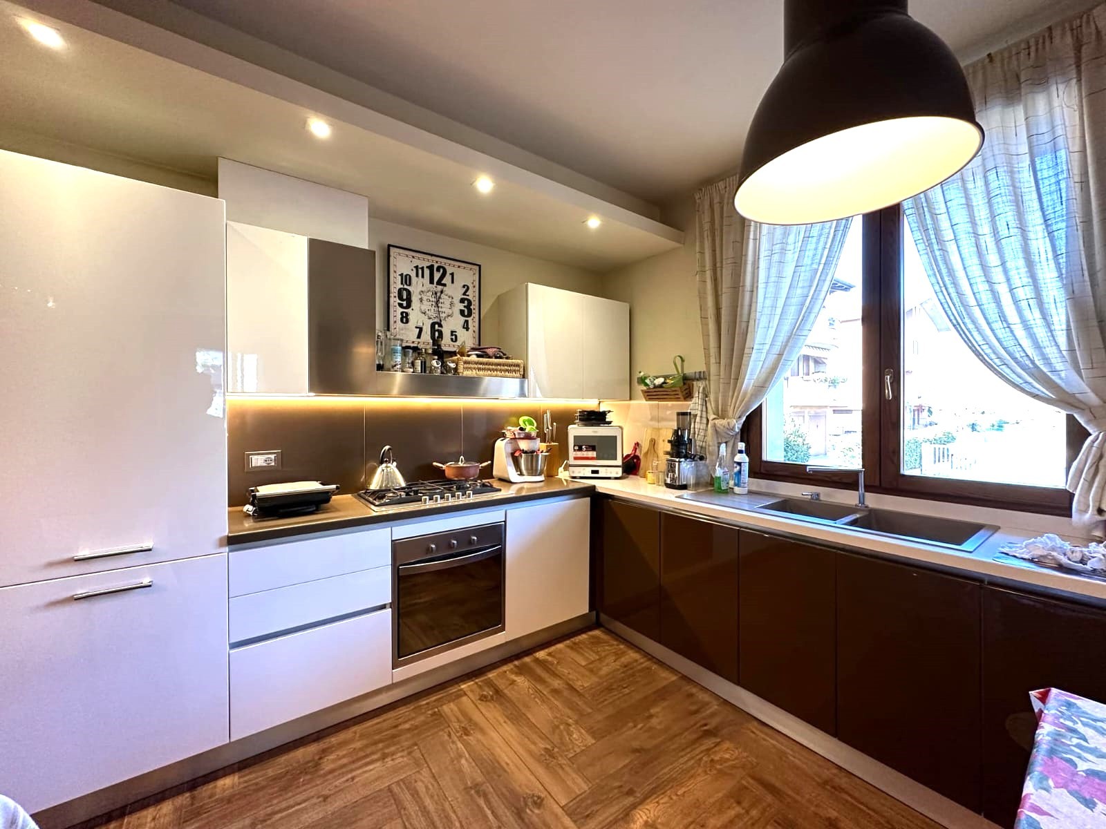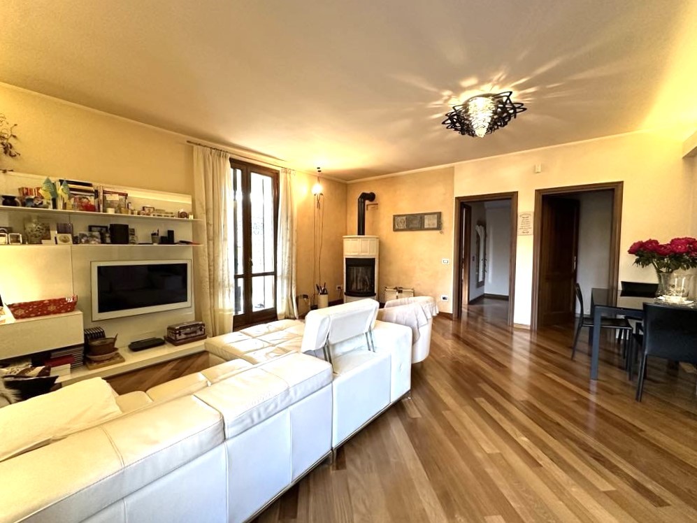 Composto da ingresso su ampio soggiorno, cucina abitabile, terrazza con accesso al giardino, disimpegno notte, due camere e bagni.