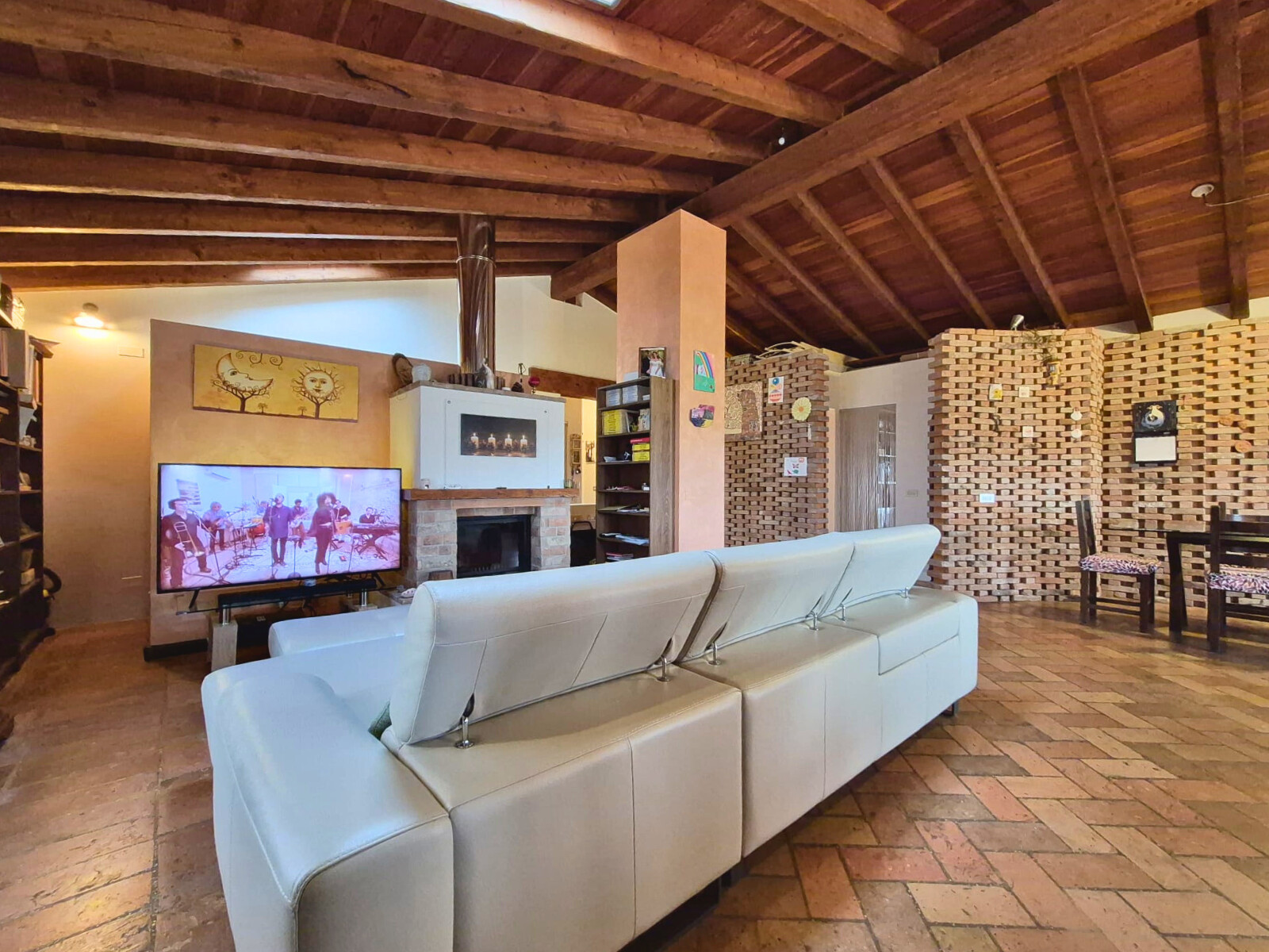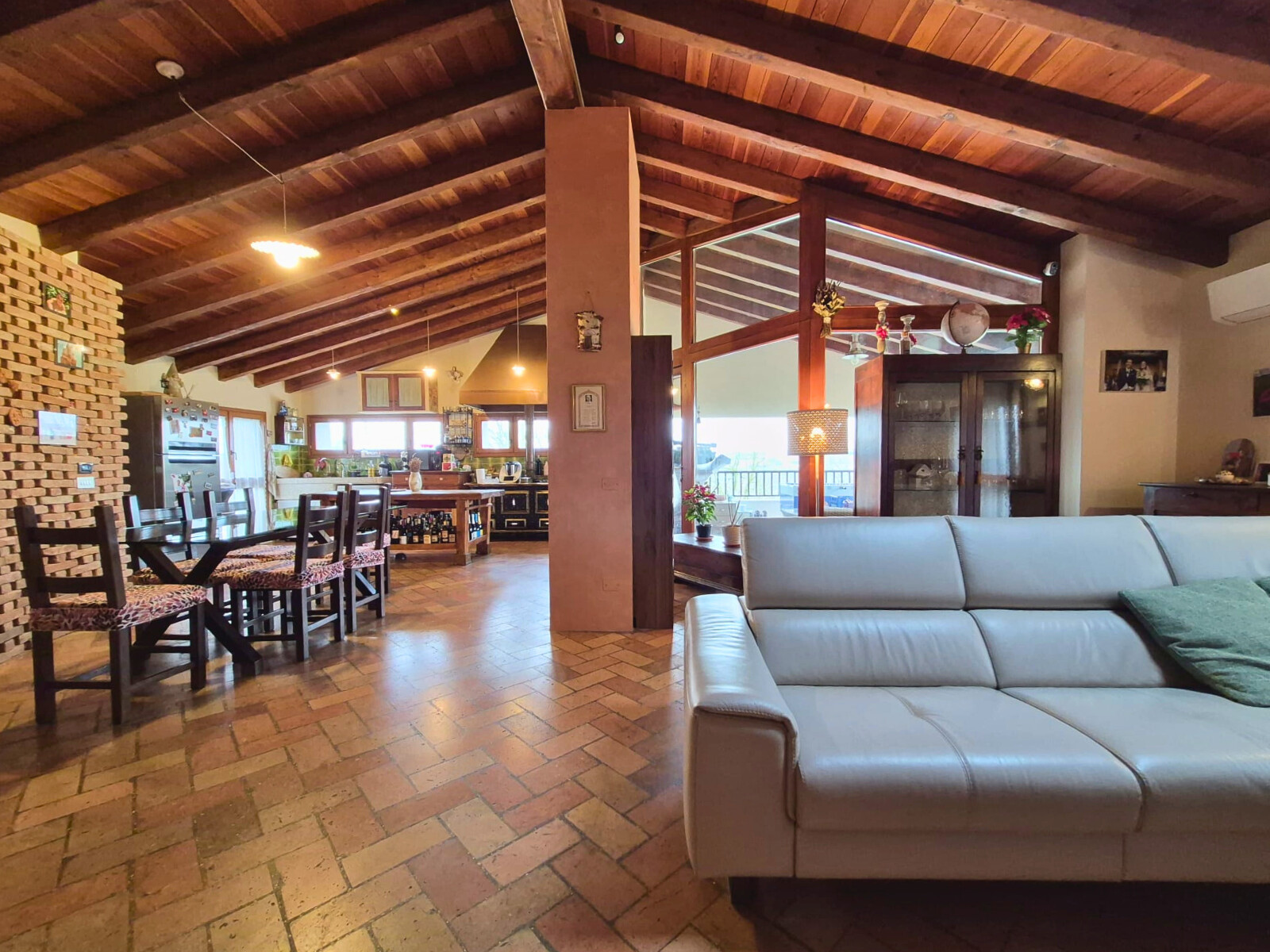 Piano secondo, ingresso su AMPIO soggiorno open space con cucina a vista e camino, TERRAZZO LOGGIATO, disimpegno, ripostiglio e bagno, dis. notte, 3 camere di cui una completa di cabina armadio e bagno privato