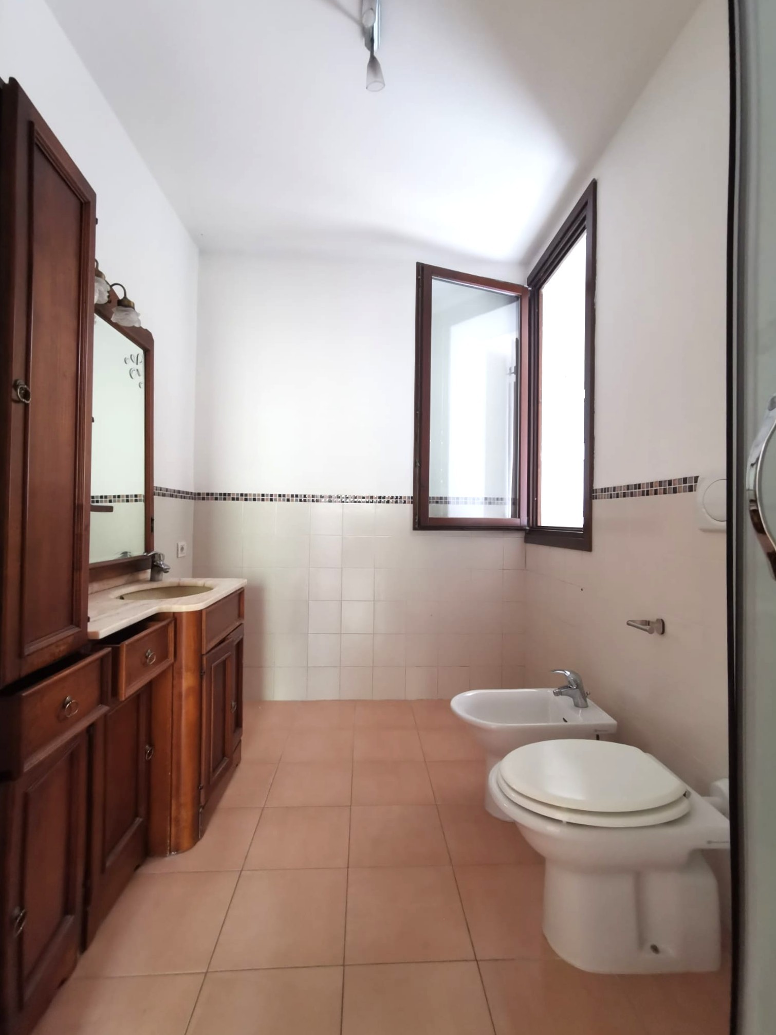 Al piano sottostante ampia zona servizi con 3 vani cantina e lavanderia.