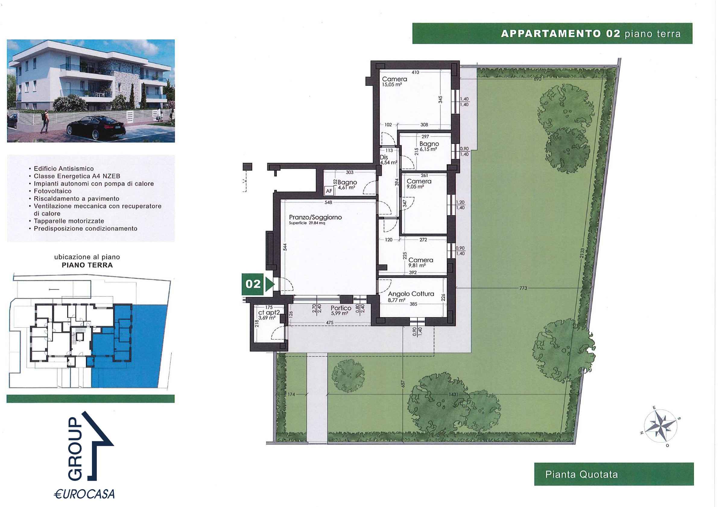 Dotazioni: Edificio Antisismico, Classe energetica A4 NZEB, Impianti autonomi con pompa di calore, Fotovoltaico, Riscaldamento a pavimento, Ventilazione meccanica con recuperatore di calore, Tapparelle motorizzate, Predisposizione condizionamento.