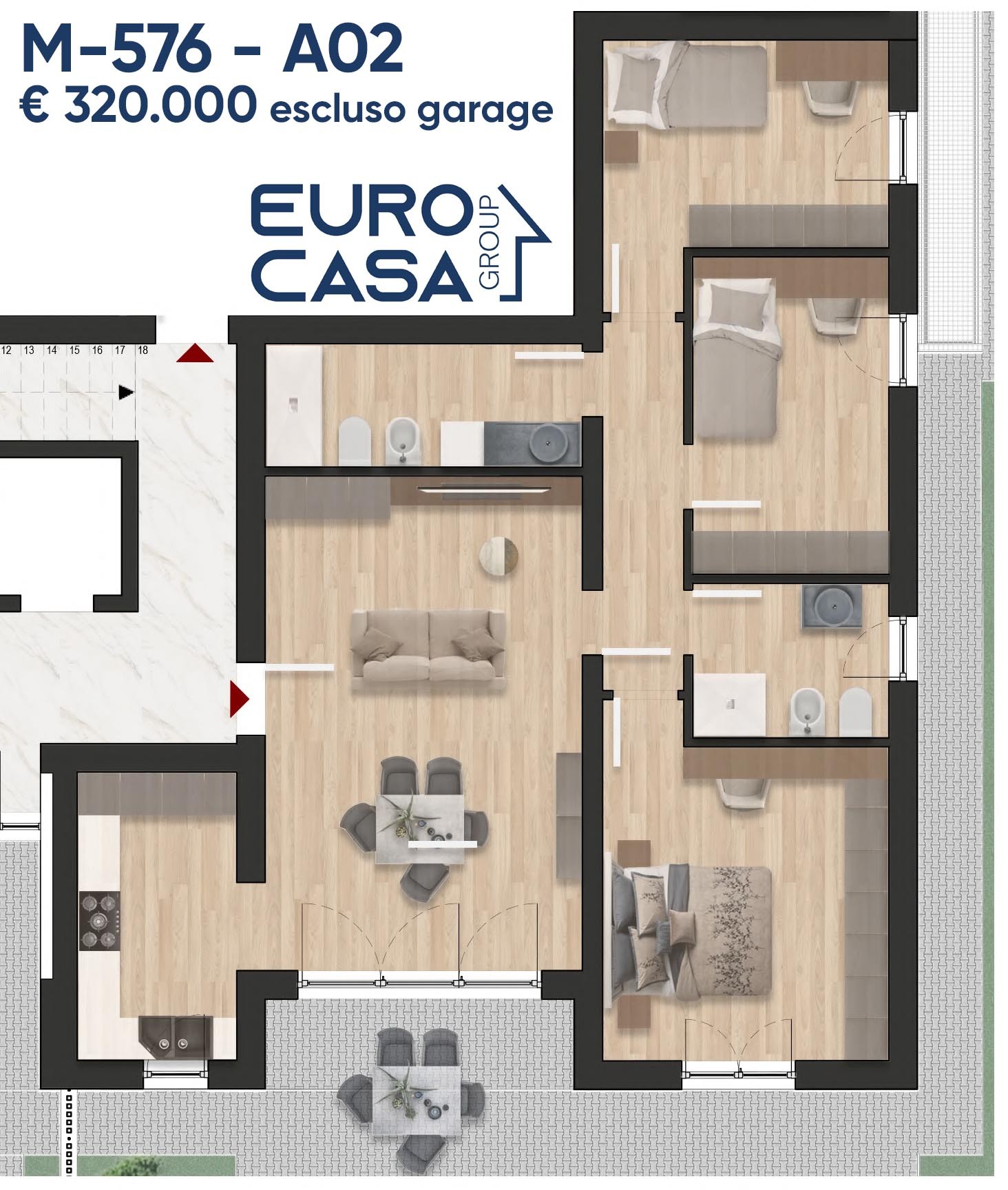 M-576 – A02 SOLIGNANO NUOVO in consegna estate 2027 – 3 CAMERE – SOGGIORNO e CUCINA SEPARATA – GIARDINO di oltre 100mq