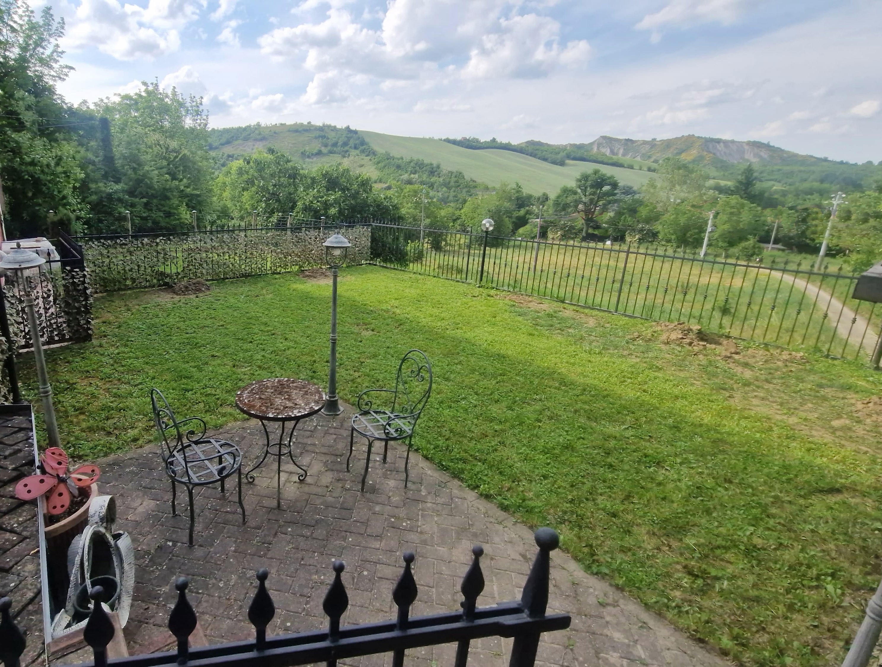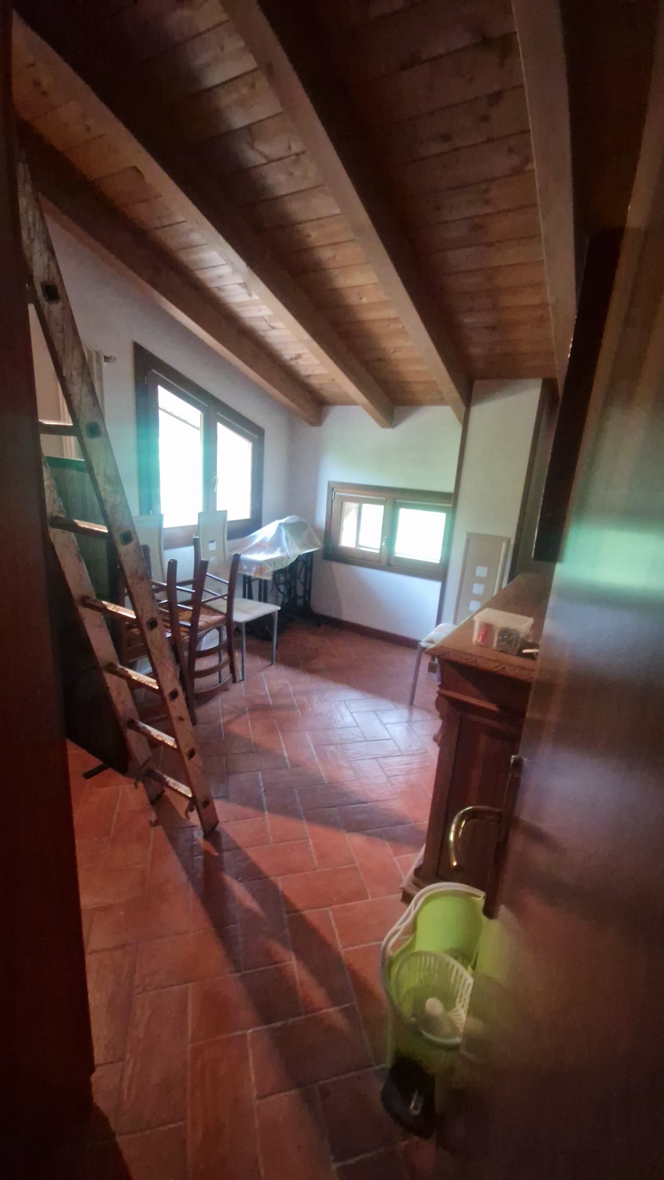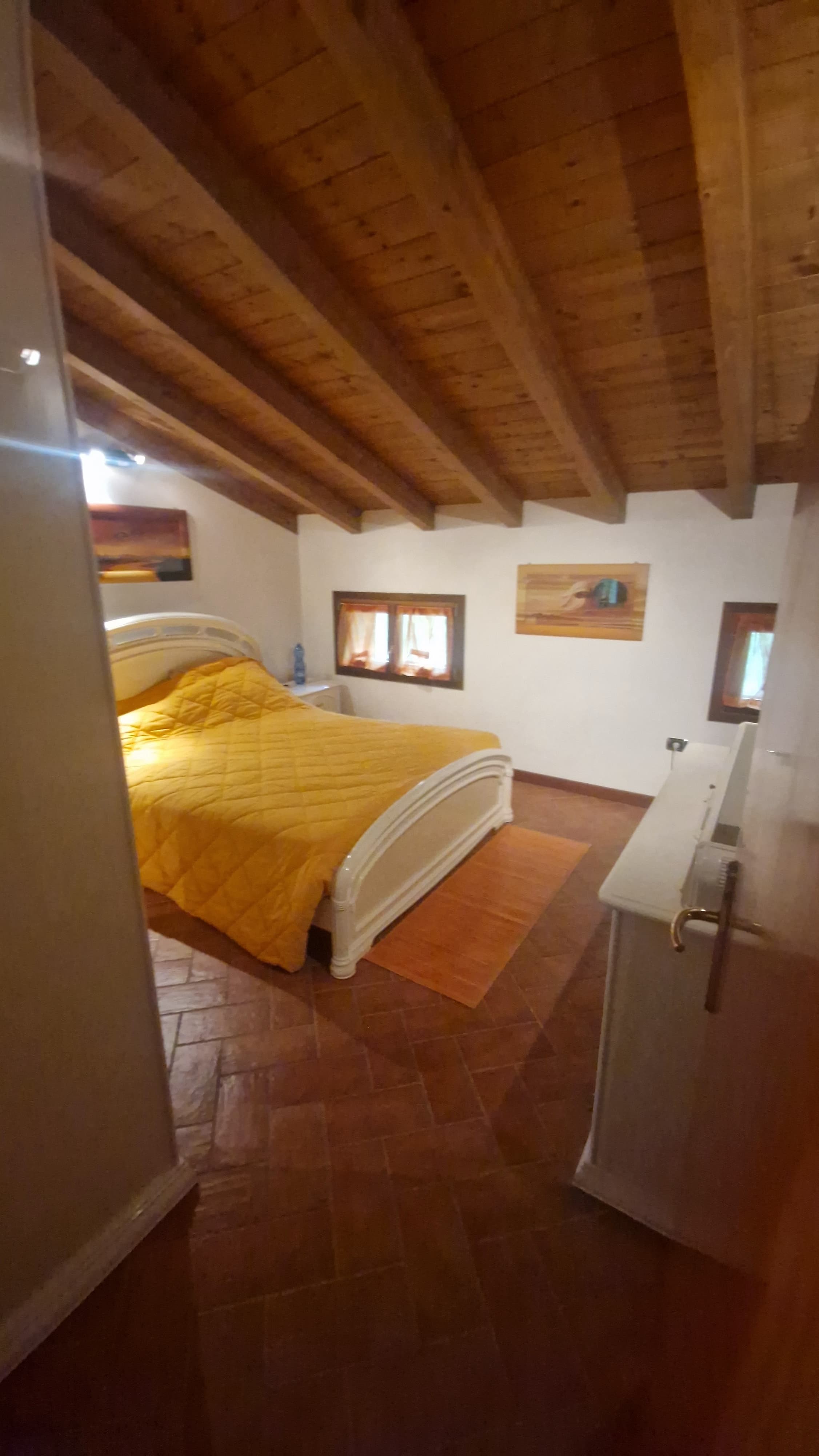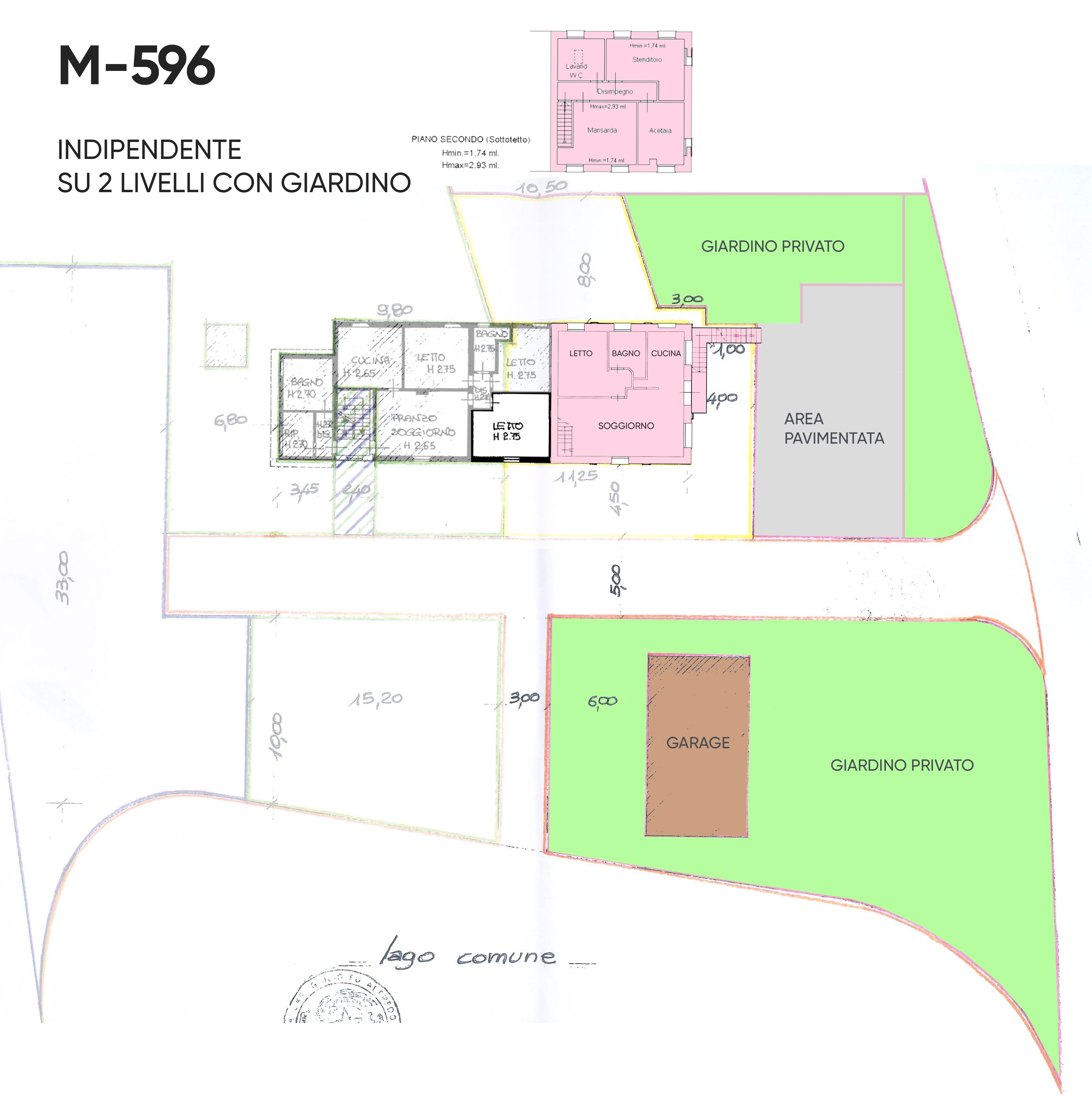In contesto di 4 UNITA’ ABITATIVE ristrutturato nel 2008 in zona verde e con la MASSIMA PRIVACY, appartamento MAISONETTE INDIPENDENTE al 1° e 2° piano sottotetto/mansardato con ingresso su soggiorno e cucina separata/separabile, disimpegno, camera matrimoniale e bagno; al piano superiore, in parte mansarda e in parte sottotetto, ulteriore CAMERA MATRIMONIALE ed altri 2 vani ad uso camera e bagno/lavanderia. Al piano TERRA, AMPIO CORTILE PAVIMENTATO e AREA VERDE recintata di oltre 200mq con GARAGE/DEPOSITO di circa 60mq con ulteriore terreno circostante non recintato ma ben definito. Possibilità di utilizzare anche il laghetto in comproprietà.