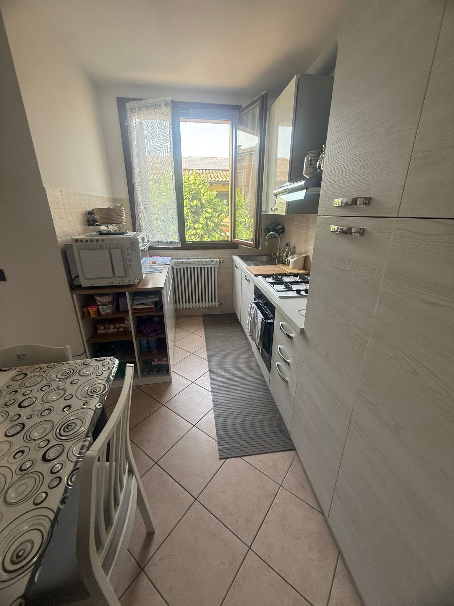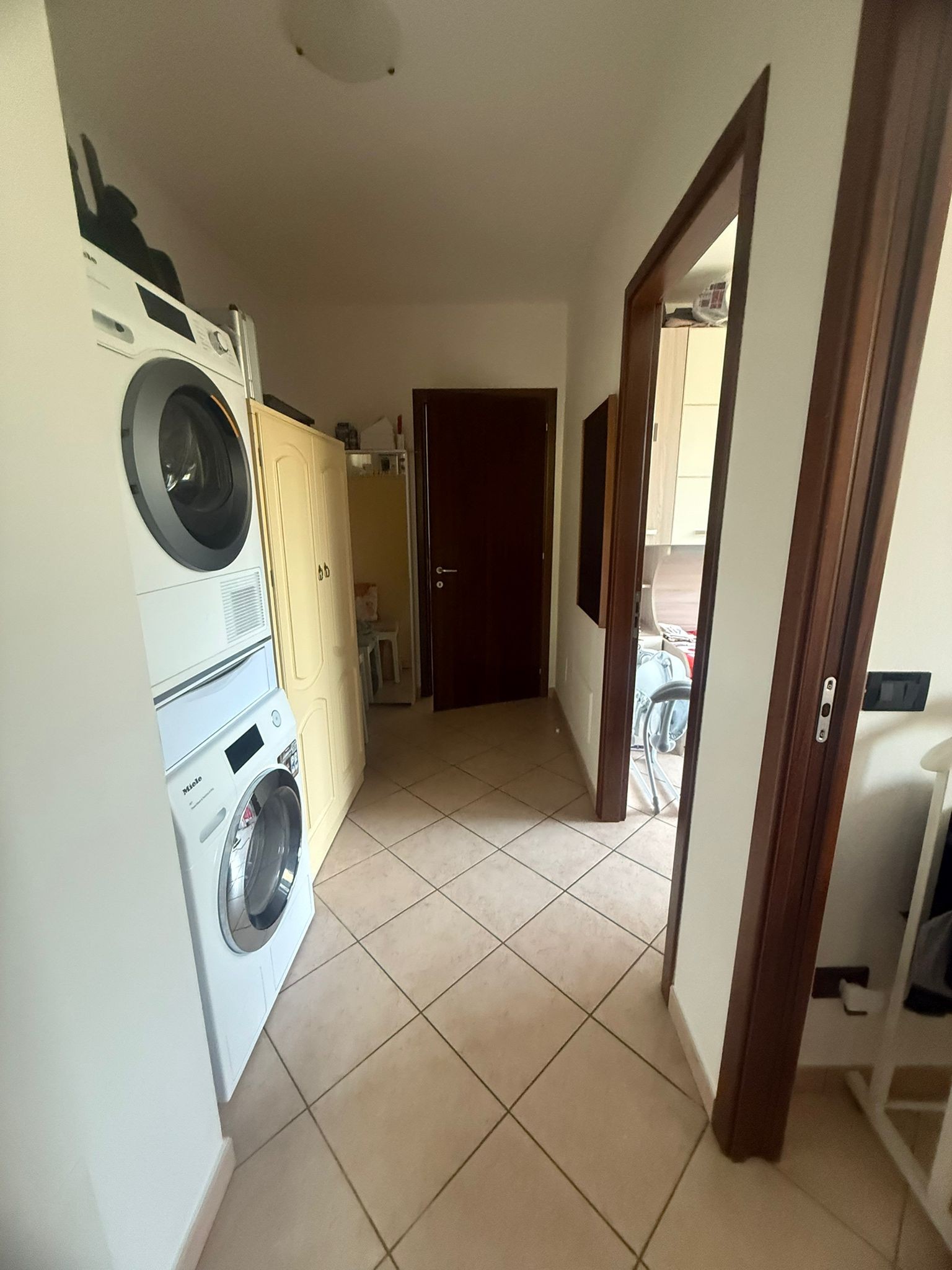soggiorno con cucina a vista, BALCONE, disimpegno notte attrezzato con angolo lavanderia e rispostiglio, DUE CAMERE, bagno, cantina e GARAGE; immobile locato, OTTIMO RAPPORTO ACQUISTO/RENDITA AFFITTO MENSILE. Contesto elegante in posizione strategica.