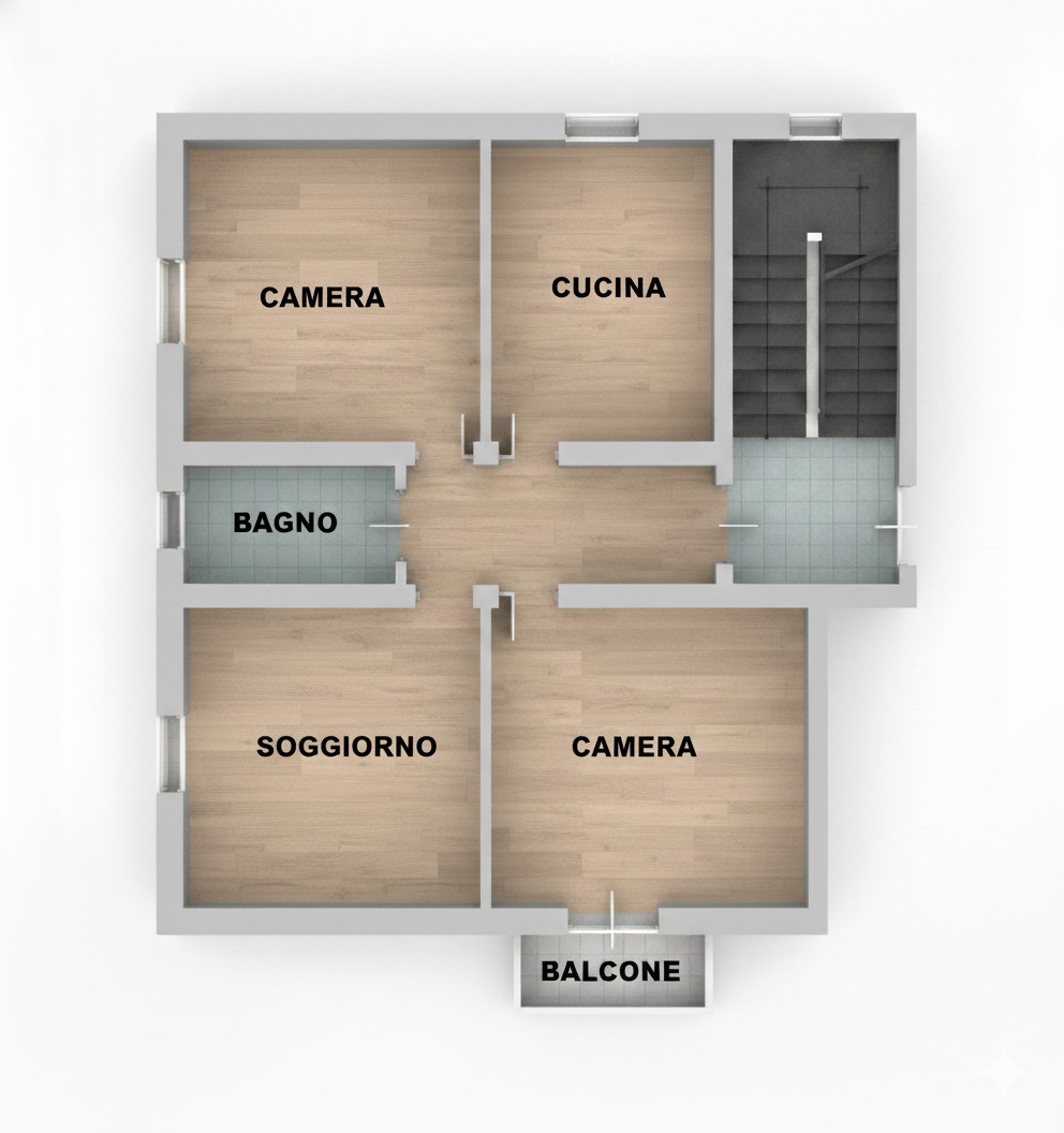 Descrizione: In ZONA CENTRALE e COMODA AI SERVIZI prop. appartamento al PIANO 2° comp. da: Ingresso, soggiorno con BALCONE, CUCINA ABITABILE, 2 camere MATRIMONIALI e bagno.