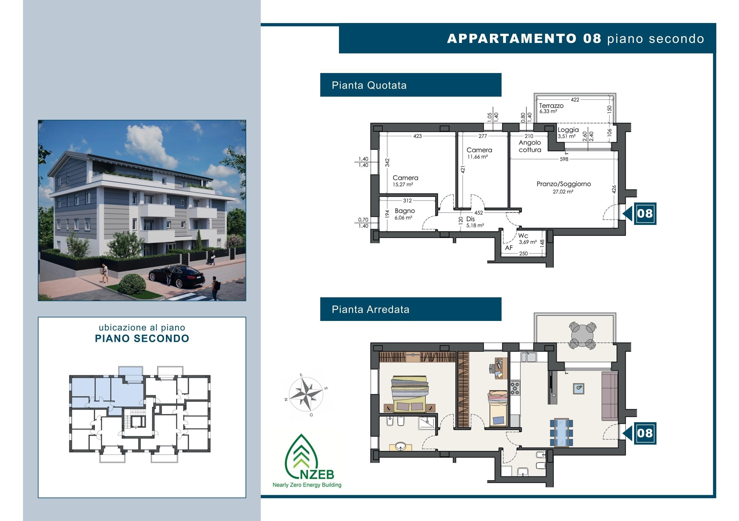Descrizione: In elegante palazzina di NUOVA COSTRUZIONE (solo 13 unità abitative), realizzata con tecnologie per il risparmio energetico, proponiamo AMPIO TRILOCALE al 2° PIANO composto da: