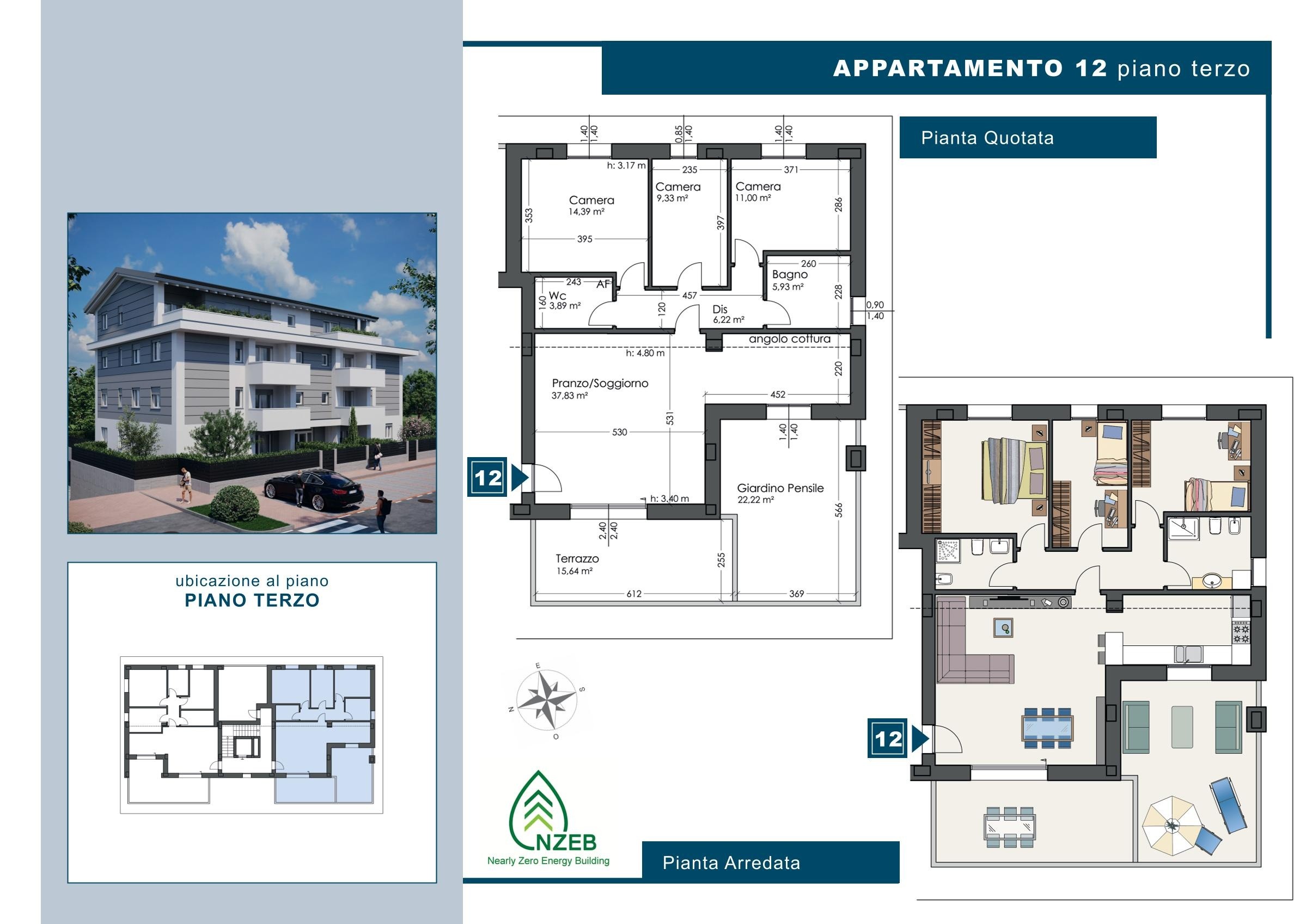 Descrizione: In elegante palazzina di NUOVA COSTRUZIONE (solo 13 unità abitative), realizzata con tecnologie per il risparmio energetico, proponiamo AMPIO TRILOCALE al 3° e ULTIMO PIANO composto da: