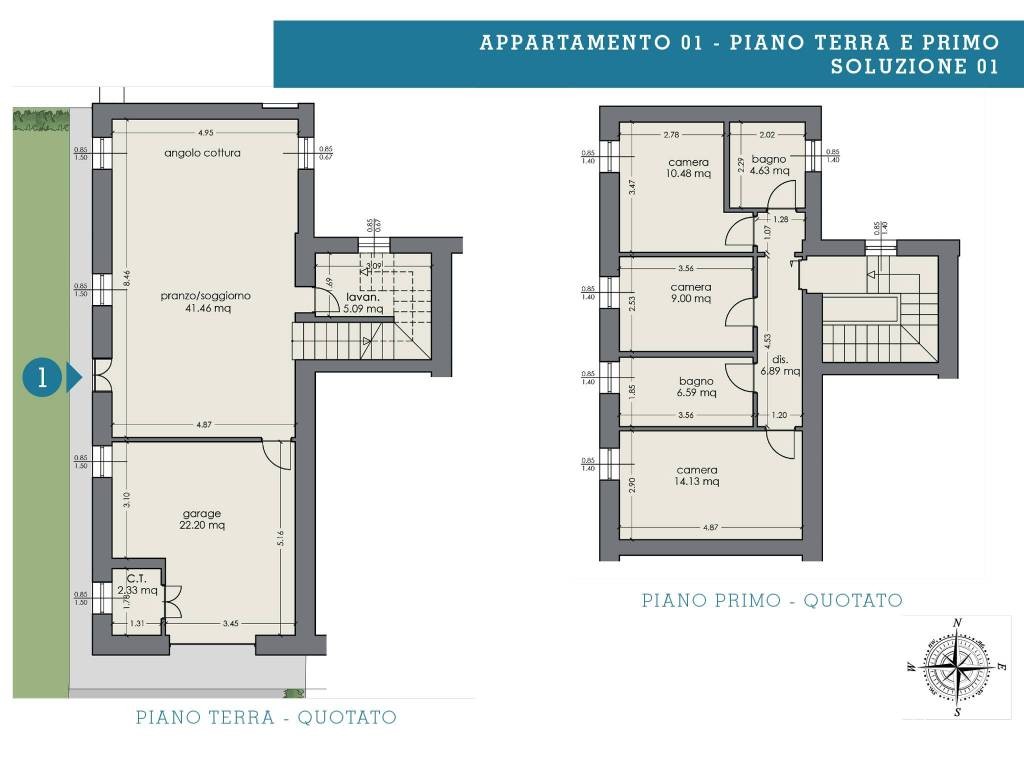 Descrizione tipo A-01: Elegante appartamento con ingresso indipendente e giardino privato con 2 posti auto comp.to da: ingresso in soggiorno, cucina abitabile, bagno e collegamento interno al garage e alla centrale termica; scala interna per accedere alla zona notte con 3 camere e 2 bagni. Consegna fine 2023 – – – >