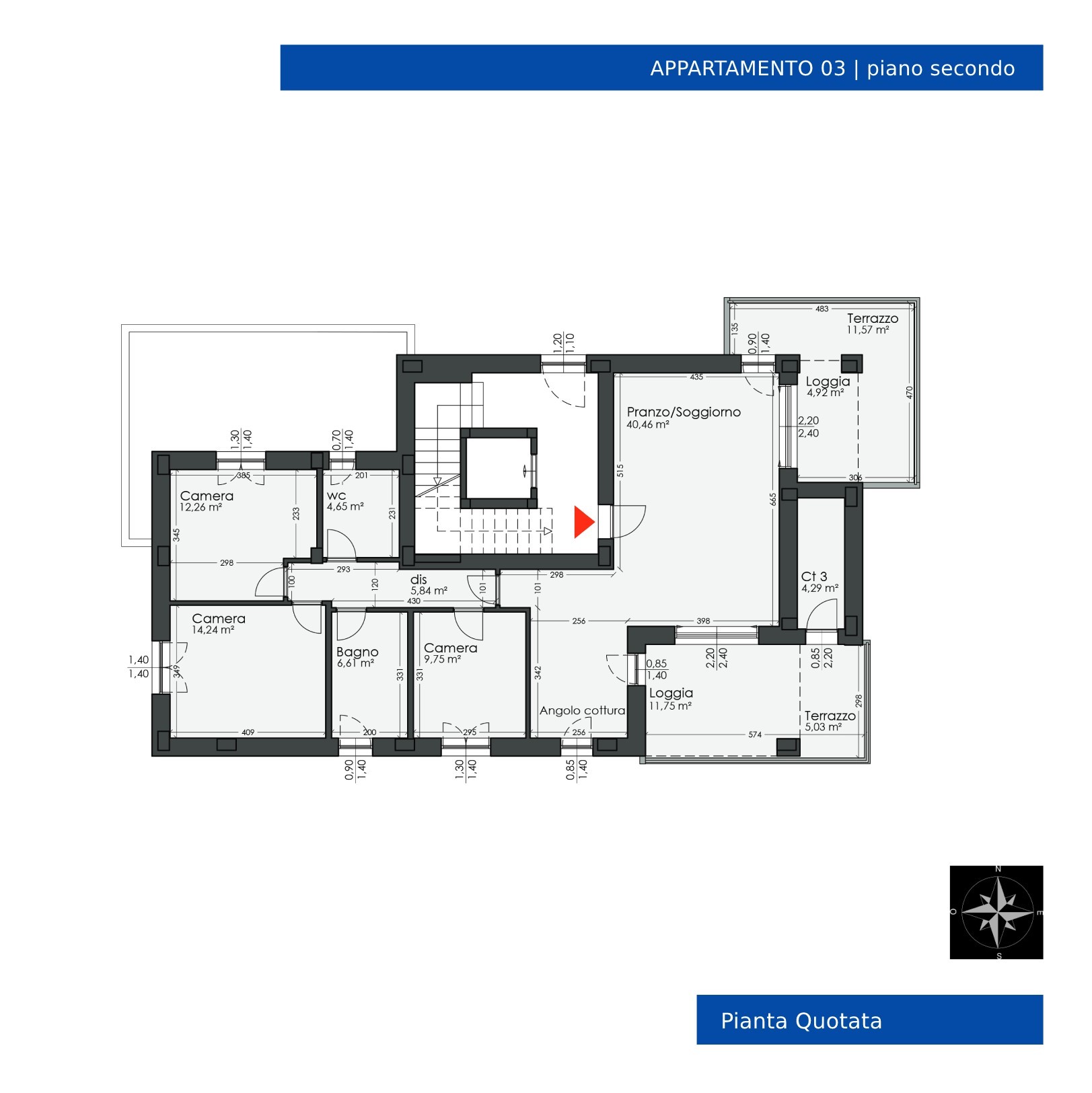 Descrizione: Elegante SECONDO PIANO comp.da: Soggiorno con possibilità di cucina separata 41 mq., 2 terrazze di 16 mq, 2 bagni, 3 camere, ampio garage 25 mq. – – – >