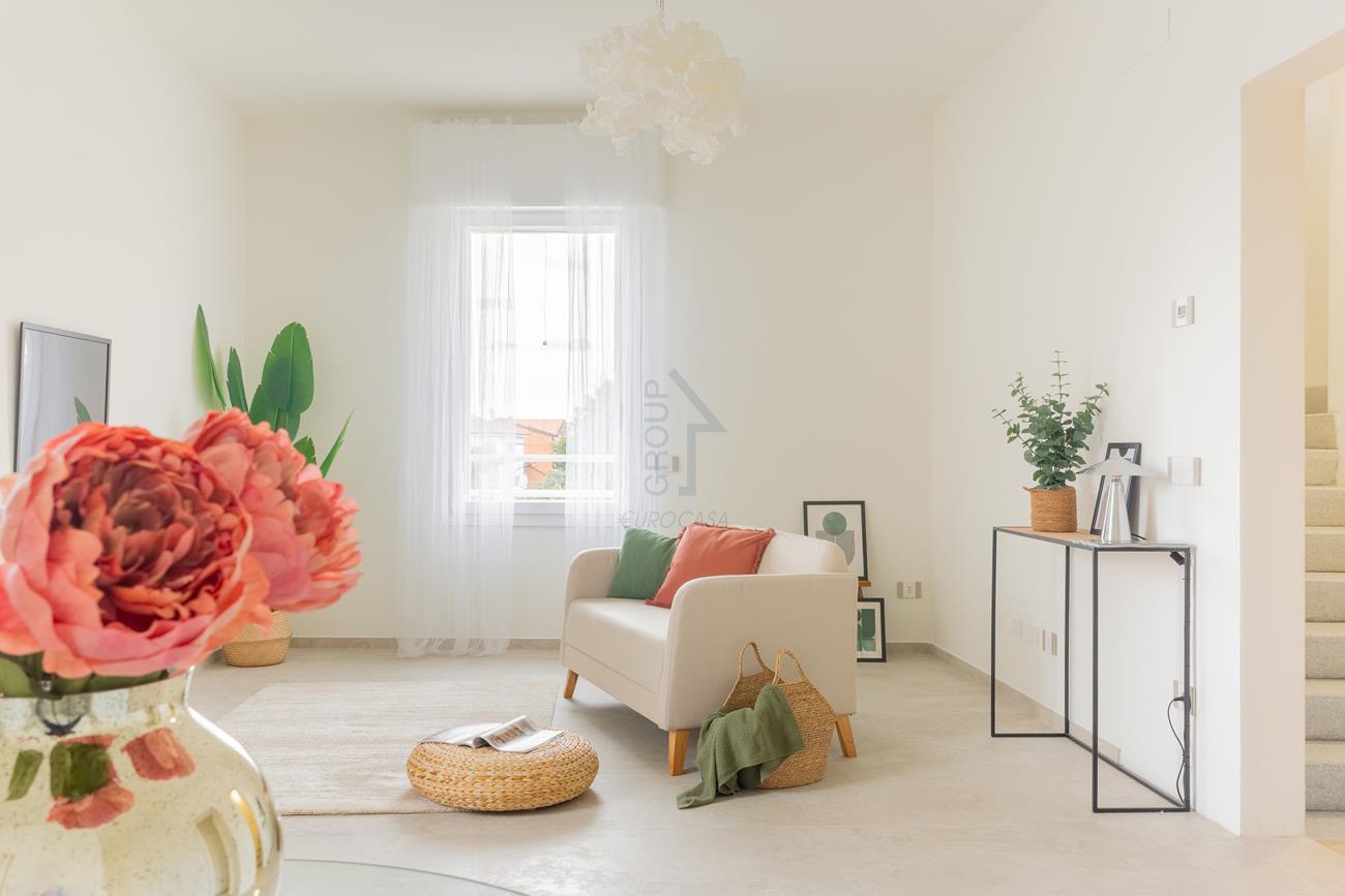 Dotazioni: riscaldamento a pavimento, pannelli solari, porte DR e PIVATO, PULSANTIERE LIVING NOW, predisposizione per aria condizionata, SERRAMENTI FINSTRAL con zanzariere, predisposizione per depuratore, tapparelle in alluminio automatizzate e orientabili.
