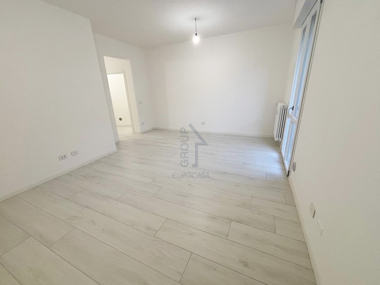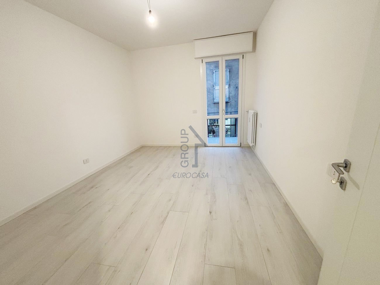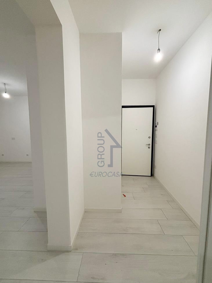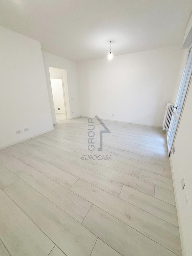 Ingresso, ampio soggiorno con angolo cottura e balcone, una camera matrimoniale con balcone, due camere singole (di cui una con ampio terrazzo di 34 mq affacciato sulla parte interna), due bagni, ripostiglio e lavanderia.