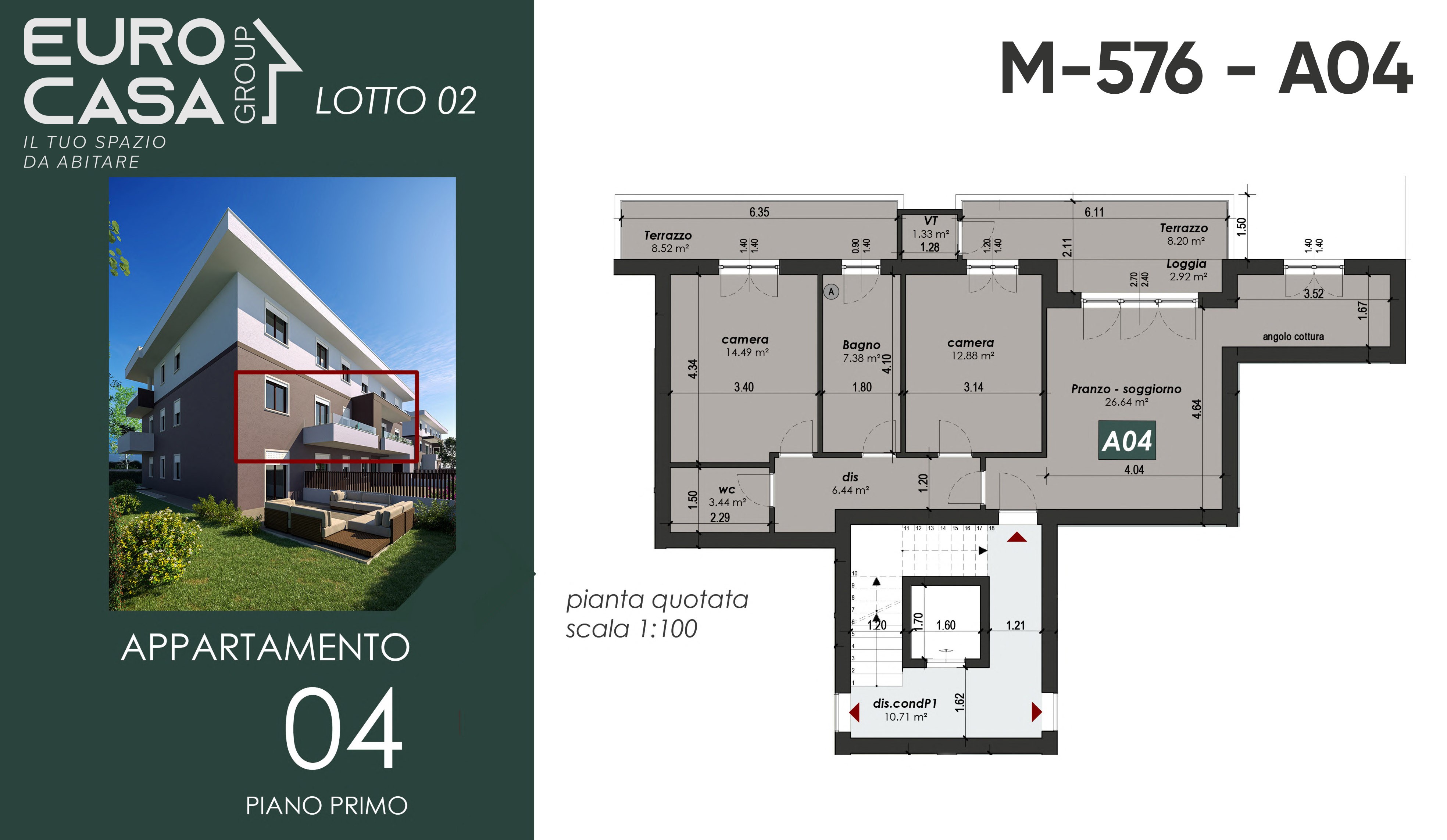 M-576 – A04 SOLIGNANO NUOVO in consegna estate 2027 – 2 CAMERE grandi – SOGGIORNO e ANGOLO COTTURA SEPARATO