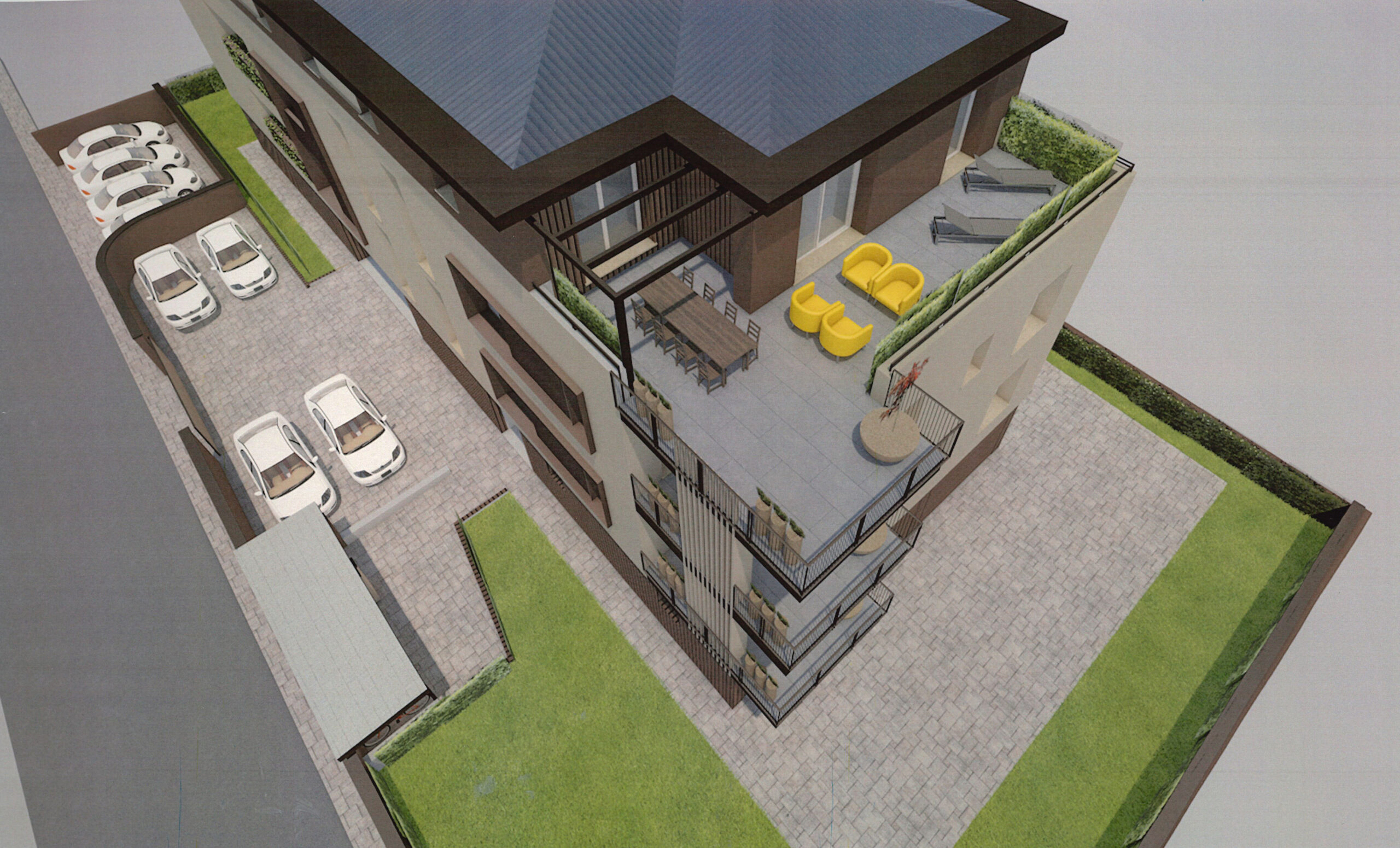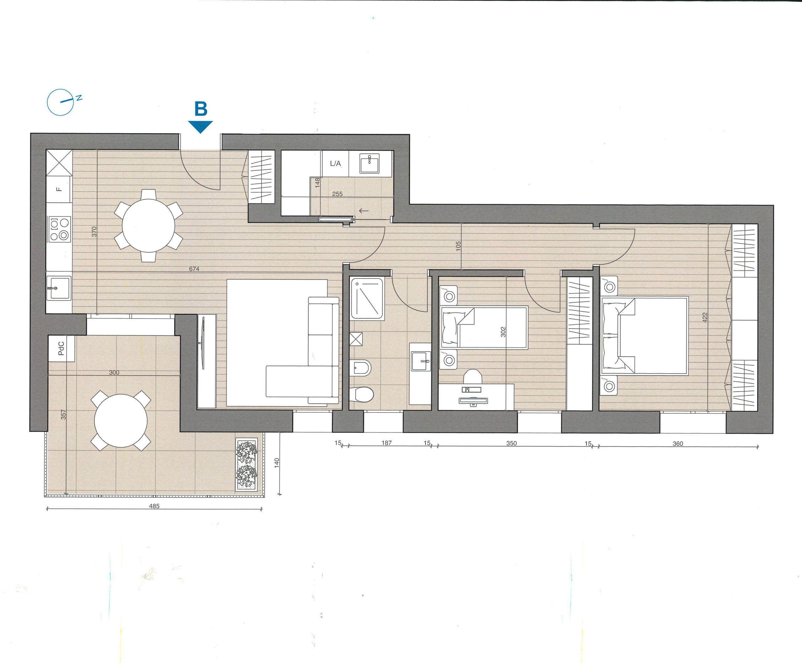 Appartamento composto da ZONA LIVING OPEN SPACE con affaccio su TERRAZZINO IN PARTE LOGGIATO, DUE CAMERE, bagno, lavanderia, GARAGE e posto auto; intervento di nuova