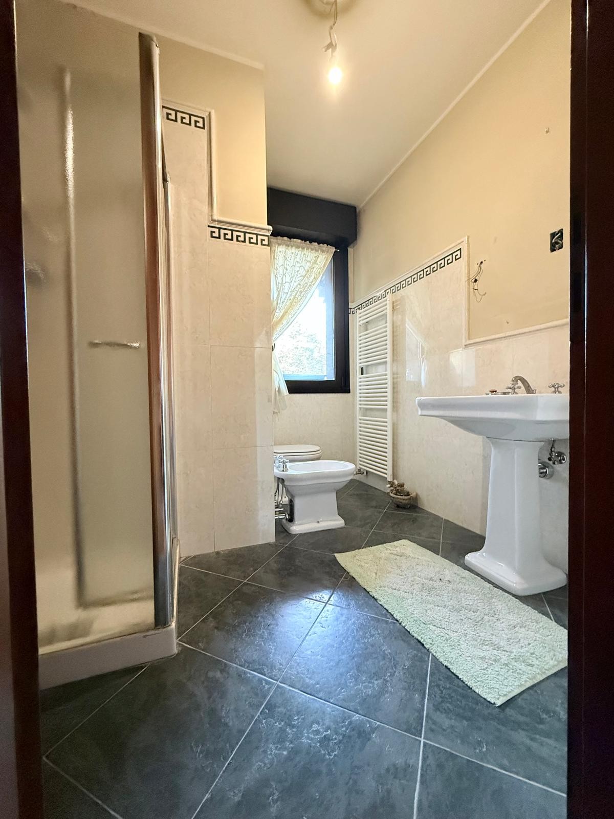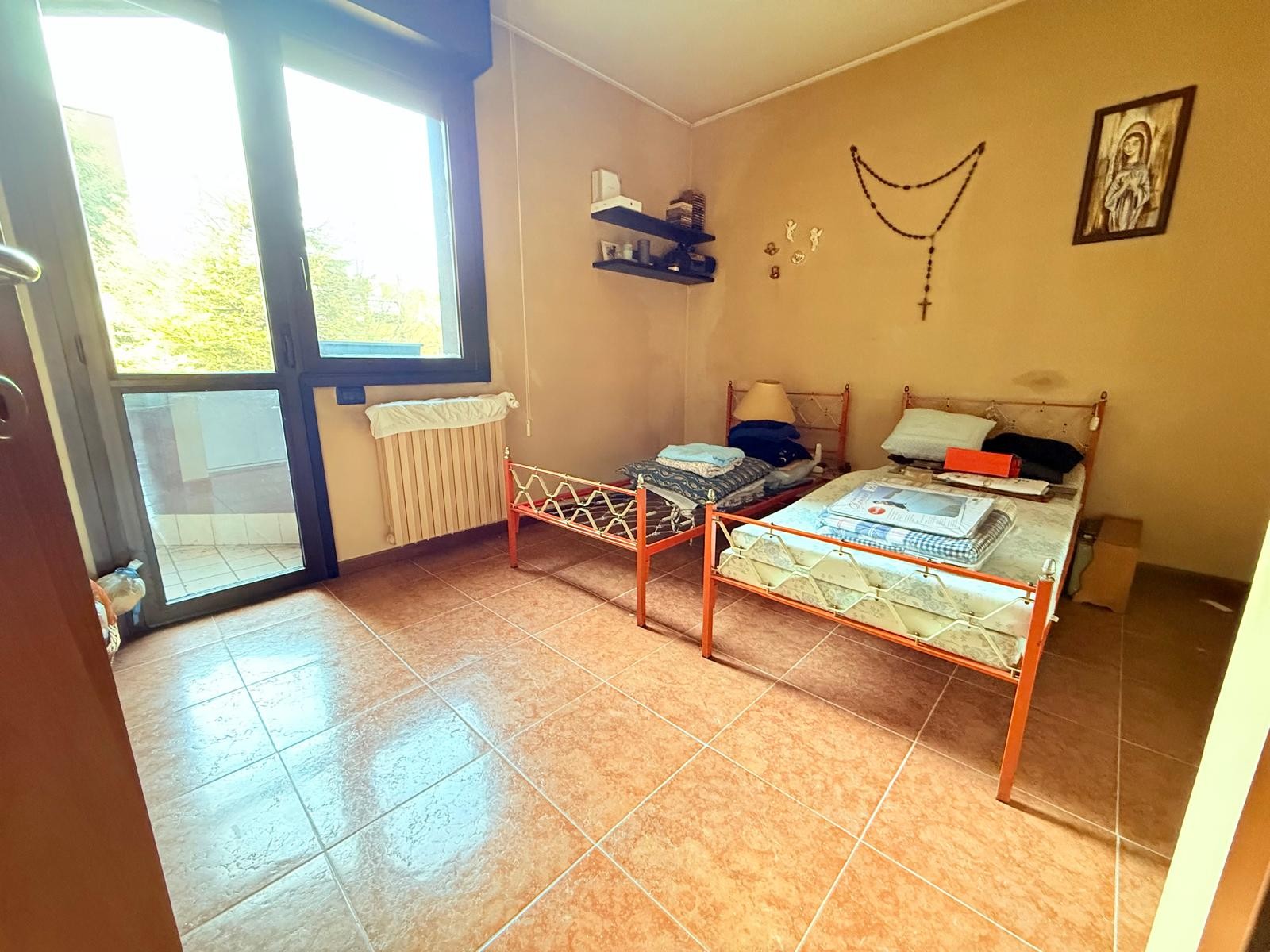 Descrizione: Appartamento al secondo piano CON DOPPIO ASCENSORE, cosi composto: ingresso su AMPIO SOGGIORNO con TERRAZZINO, CUCINA ABITABILE GRANDE con balcone, disimpegno notte, bagno principale, TRE CAMERE di cui una matrimoniale con bagno privato e garage singolo abbondante.