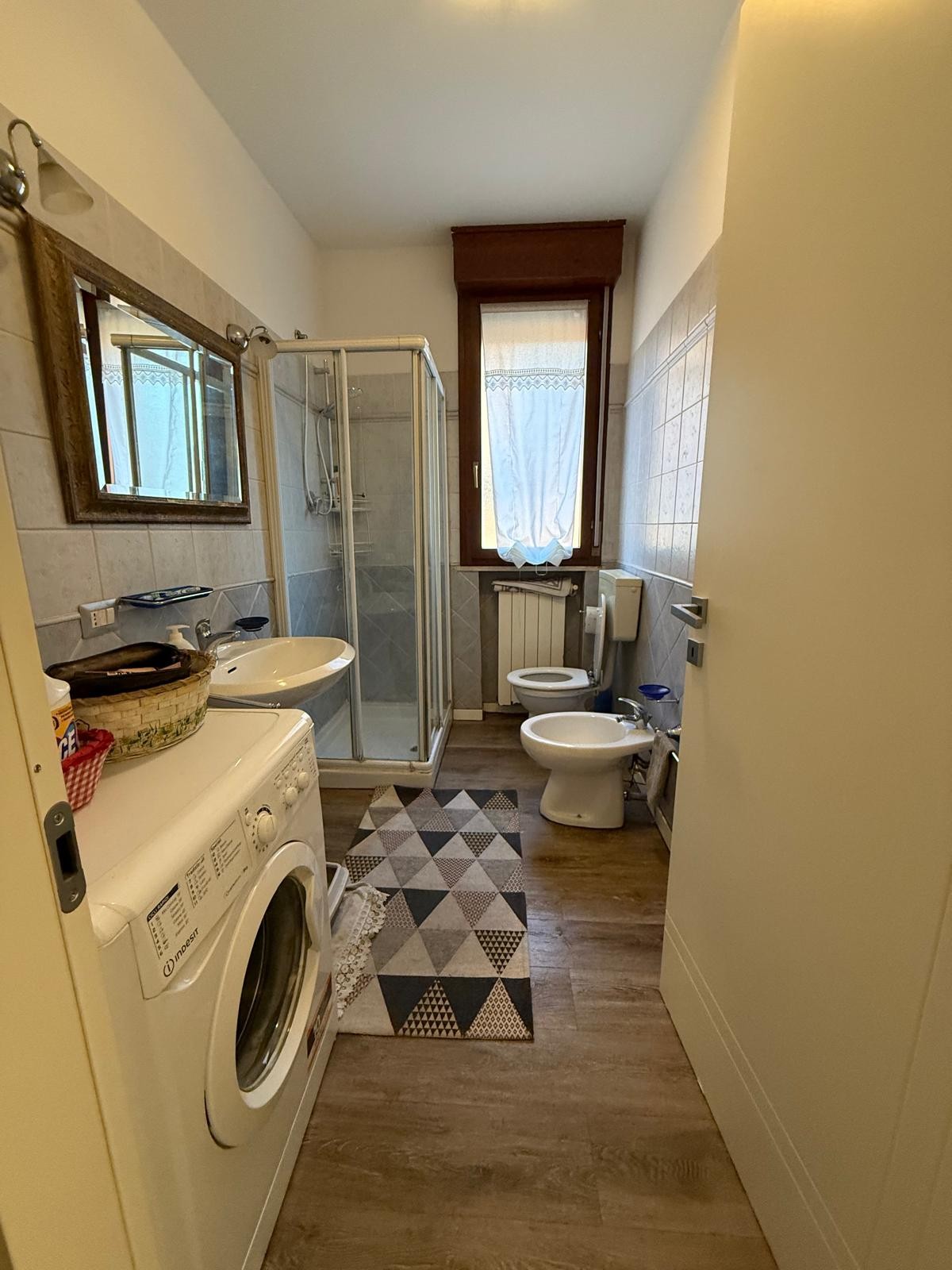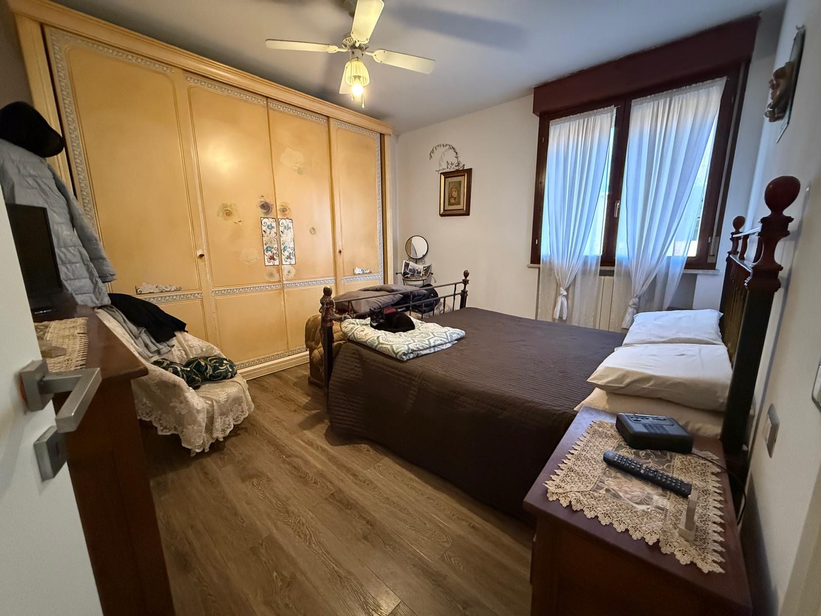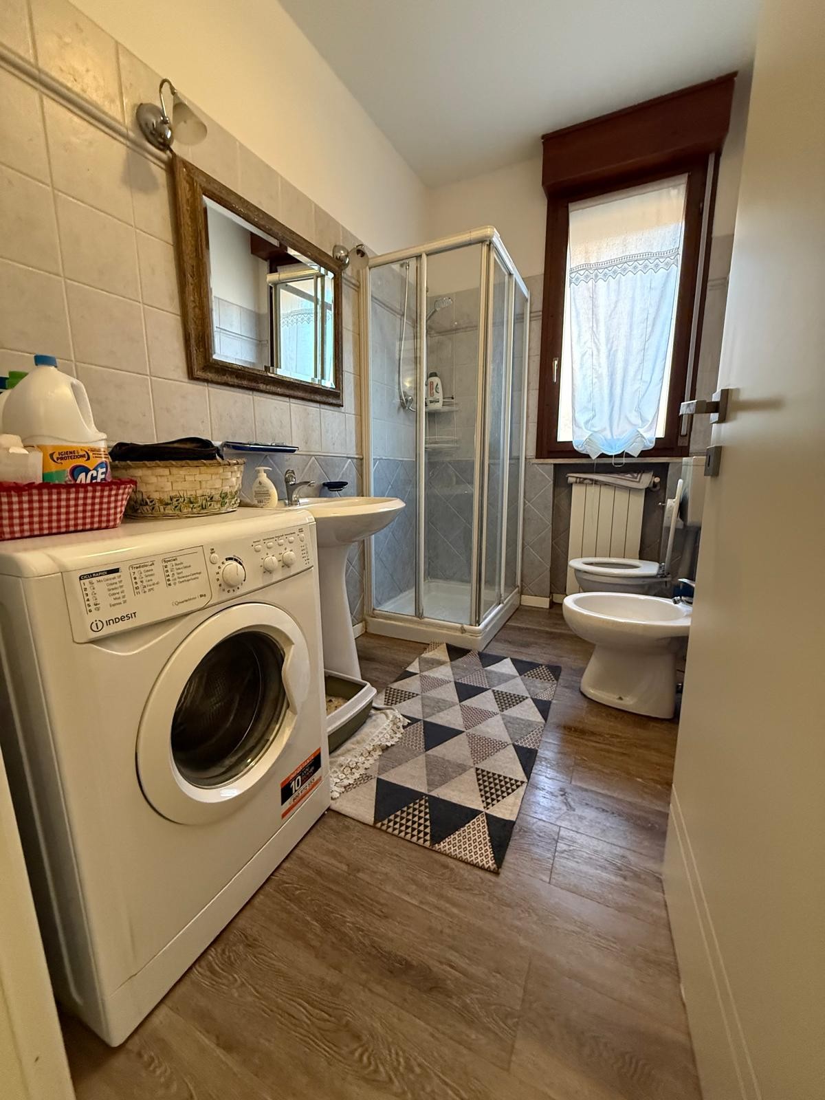 Descrizione: Appartamento al piano terra composto da ingresso in ampio soggiorno con balcone grande, cucina abitabile con giardino pavimentato e dispensa, disimpegno notte, 3 CAMERE, 2 BAGNI e garage.