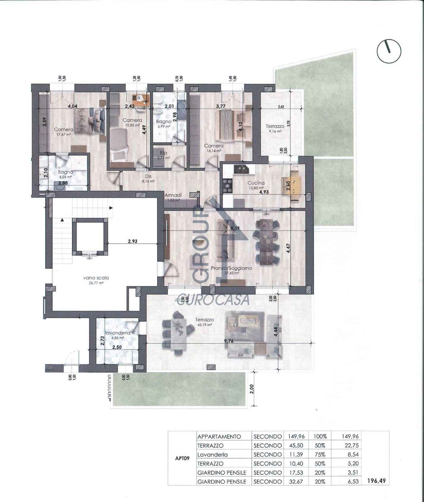 Rif. R-166 A9 – ATTICO CON AMPI TERRAZZI, GIARDINO PENSILE E DOPPIO GARAGE