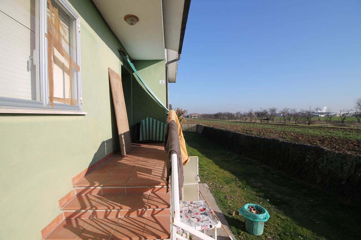 circostante pari a circa 11 biolche); la casa è composta da un piano seminterrato di circa 90mq con piccole finestre vista giardino, scala di collegamento con il piano rialzato con 4 stanze, 1 bagno e un cucinotto separato. Balcone con scala di collegamento al giardino circostante alla casa già recintato. All’interno del lotto recintato della casa sono presenti 2 magazzini di circa 40 mq ognuno a servizio