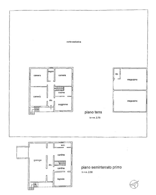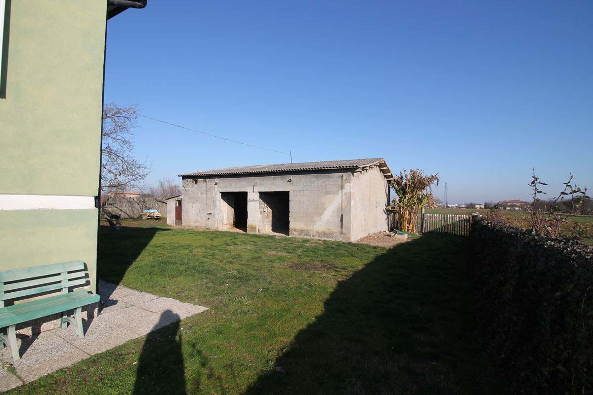 circostante pari a circa 11 biolche; la casa è composta da un piano semi-interrato con cantine, lavanderia e garage di circa 90mq complessivi con finestre alte vista giardino, scala di collegamento con il piano rialzato suddiviso in ingresso/disimpegno con balcone e scala di collegamento al giardino circostante alla casa già recintato, CUCINA con cucinotto separato, 3 camere e bagno. TUTTO COMPLETAMENTE DA RISTRUTTURARE. All’interno del lotto recintato della casa sono presenti 2 MAGAZZINI di circa 40 mq OGNUNO a servizio