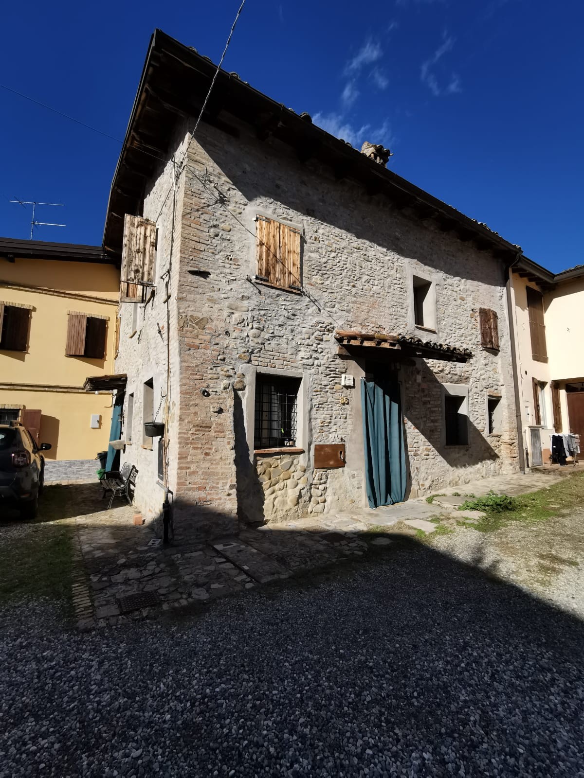 Completano l’immobile l’area cortiliva privata ed il ricovero attrezzi separato dall’abitazione principale —>