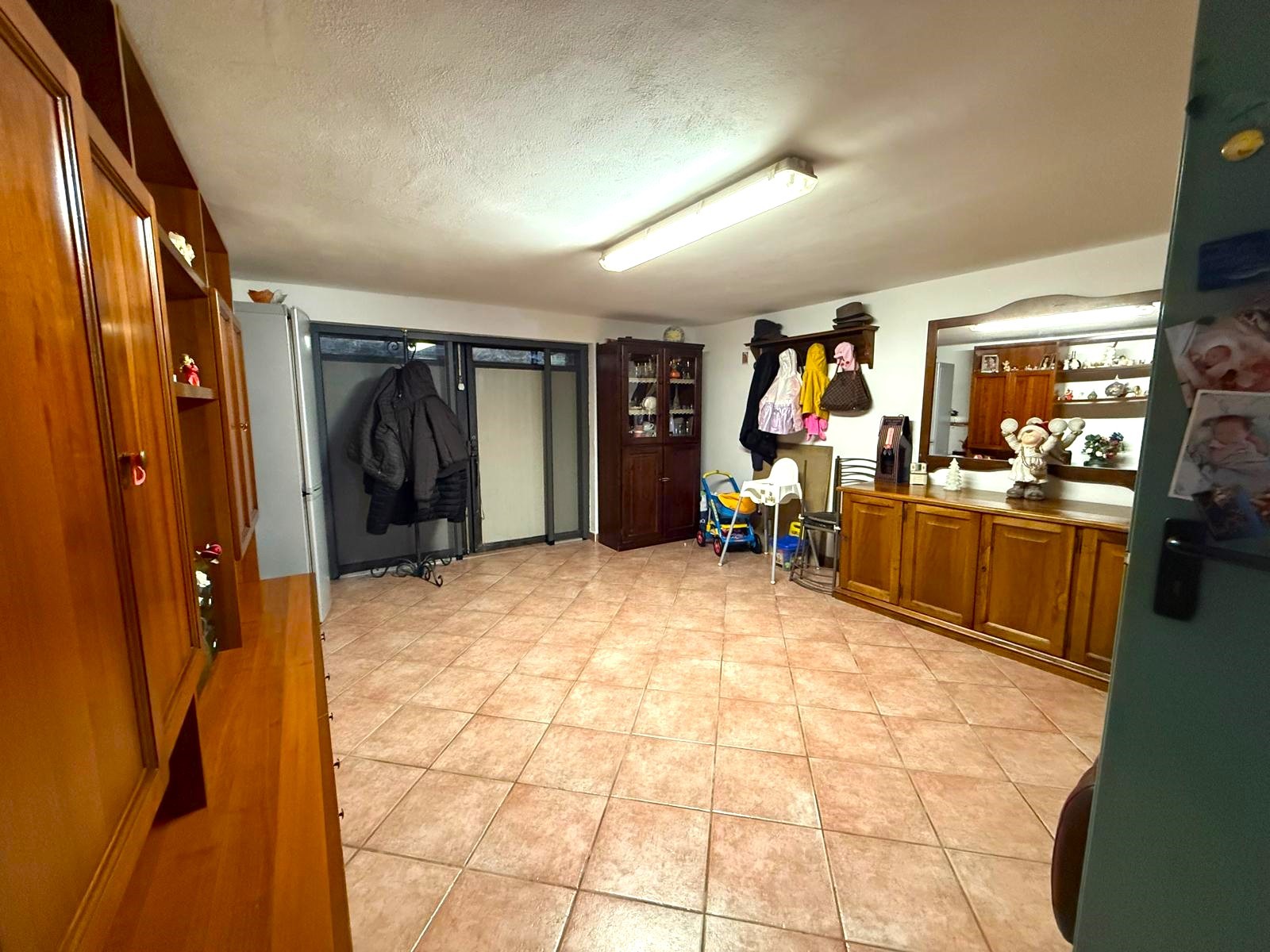 Piano terra cantina adibita a TAVERNA con lavanderia e ripostiglio, GARAGE e AREA CORTILIVA di PROPRIETA’ in parte pavimentata su 3 lati.