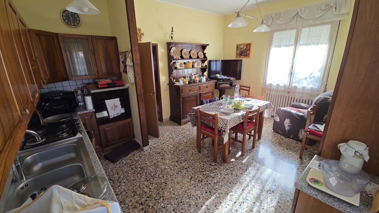 Al piano terra/rialzato appartamento composto da ingresso INDIPENDENTE, cucina con possibilità di cucinotto separato, sala da pranzo, corridoio notte, 2 camere matrimoniali e bagno (possibilità di terza Camera matrimoniale).