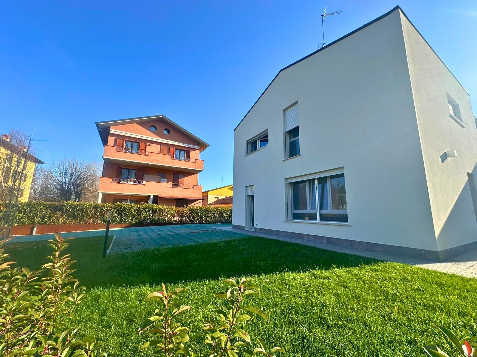 Descrizione: Castelnuovo Rangone, in zona residenziale e vicino al parco, vendiamo villetta di testa con ingresso indipendente composta da: ingresso al piano terra, AMPIO soggiorno OPEN SPACE con angolo cottura e accesso diretto al giardino privato, disimpegno e bagno;